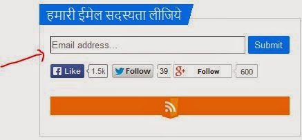 आपको Blog पर यह Form दिखाई देगा, यहॉ अपना Email Address type कीजिये और Submit पर Click कीजिये,