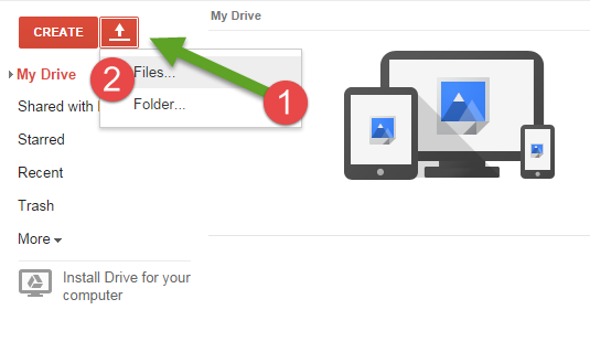 - अब गूगल ड्राइव में बने अपलोड बटन पर क्लिक कीजिये अौर File को चुनिये और अपने कम्प्यूटर से जिस किसी भी पीडीएफ या इमेज फाइल को सलैक्ट कीजिये, जिसको टैक्स्ट में कन्वर्ट करना है।